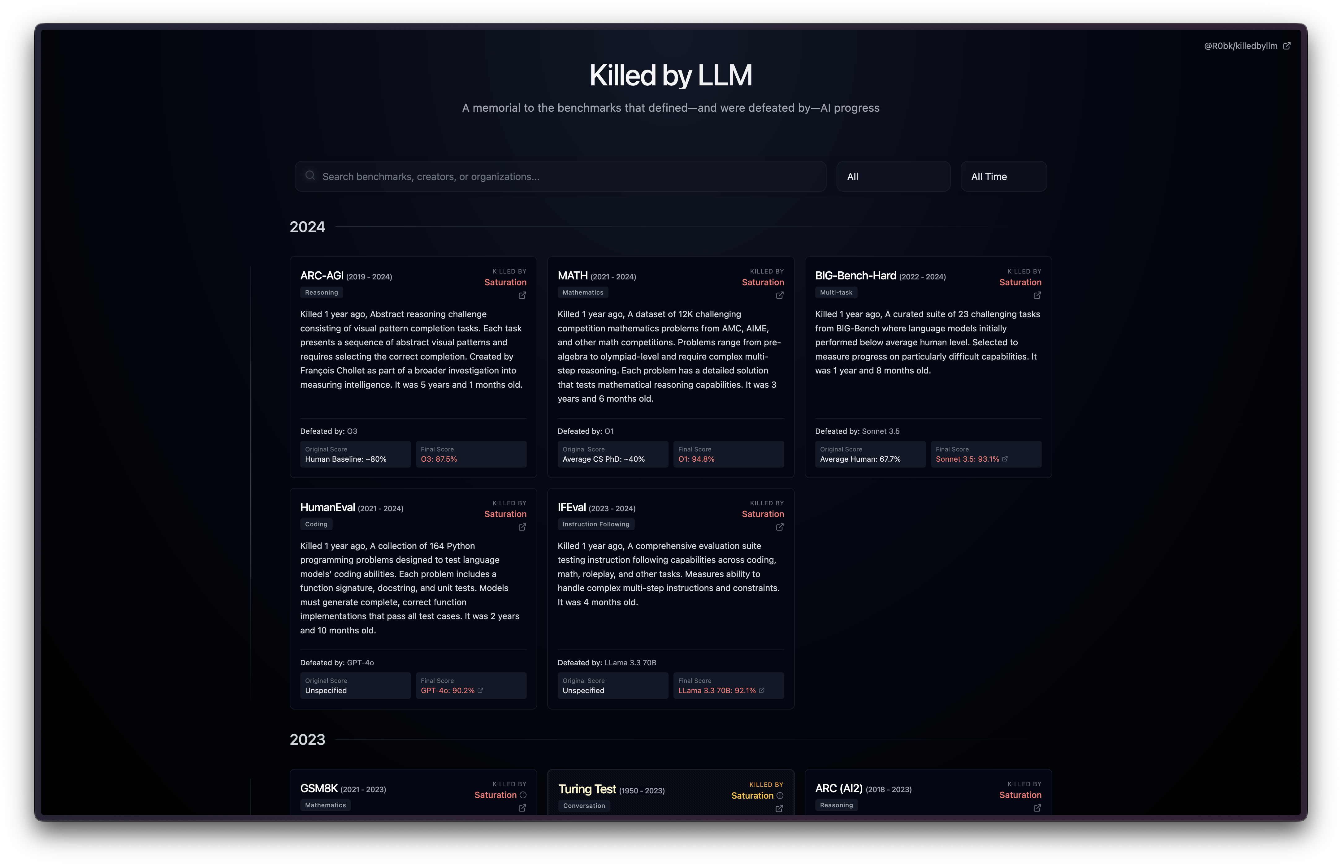 A memorial to the benchmarks that defined—and were defeated by—AI progress.